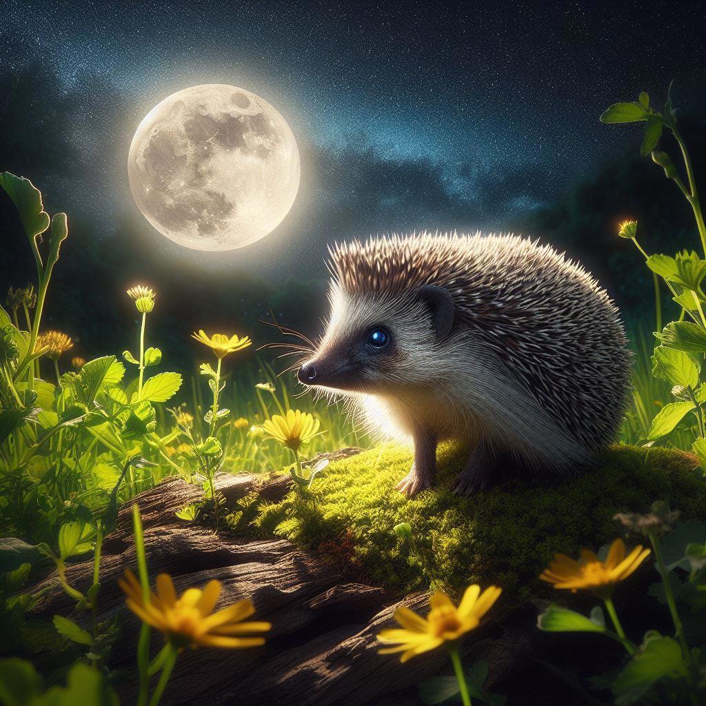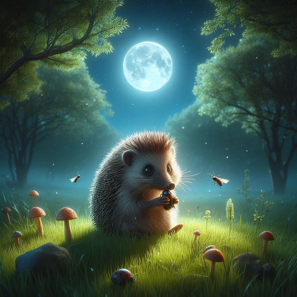 Люч тем временем усердно думал над проблемой, угрожающей его полянке. Фыркал, морщил влажный носик, топорщил острые иголочки, размышляя. Но даже, чтобы думать, нужны силы, поэтому смелый ёжик не забывал выбираться из норки, чтобы покушать. Светлыми лунными ночами он находил насекомых-вредителей, лакомясь ими, помогал любимому лесу.