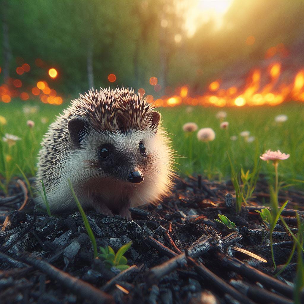 Да, она, конечно, была небольшого размера – всего один маленький костёр. Но такие костры, по беспечности людей, могут перерасти в большую стену огня, уничтожающей всё на своём пути. Всю ночь Лючу было страшно и не хватало воздуха, чтобы сделать вдох. Дым от костра заполнял всю поляну. Наступило утро. «Кажется, всё стихло», - подумал колючий малютка. Люч выбрался из норки, усмиряя, урчащий от голода живот. Знатно поохотившись, на парочку упитанных насекомых, Люч не мог избавиться от свежего запаха сажи.