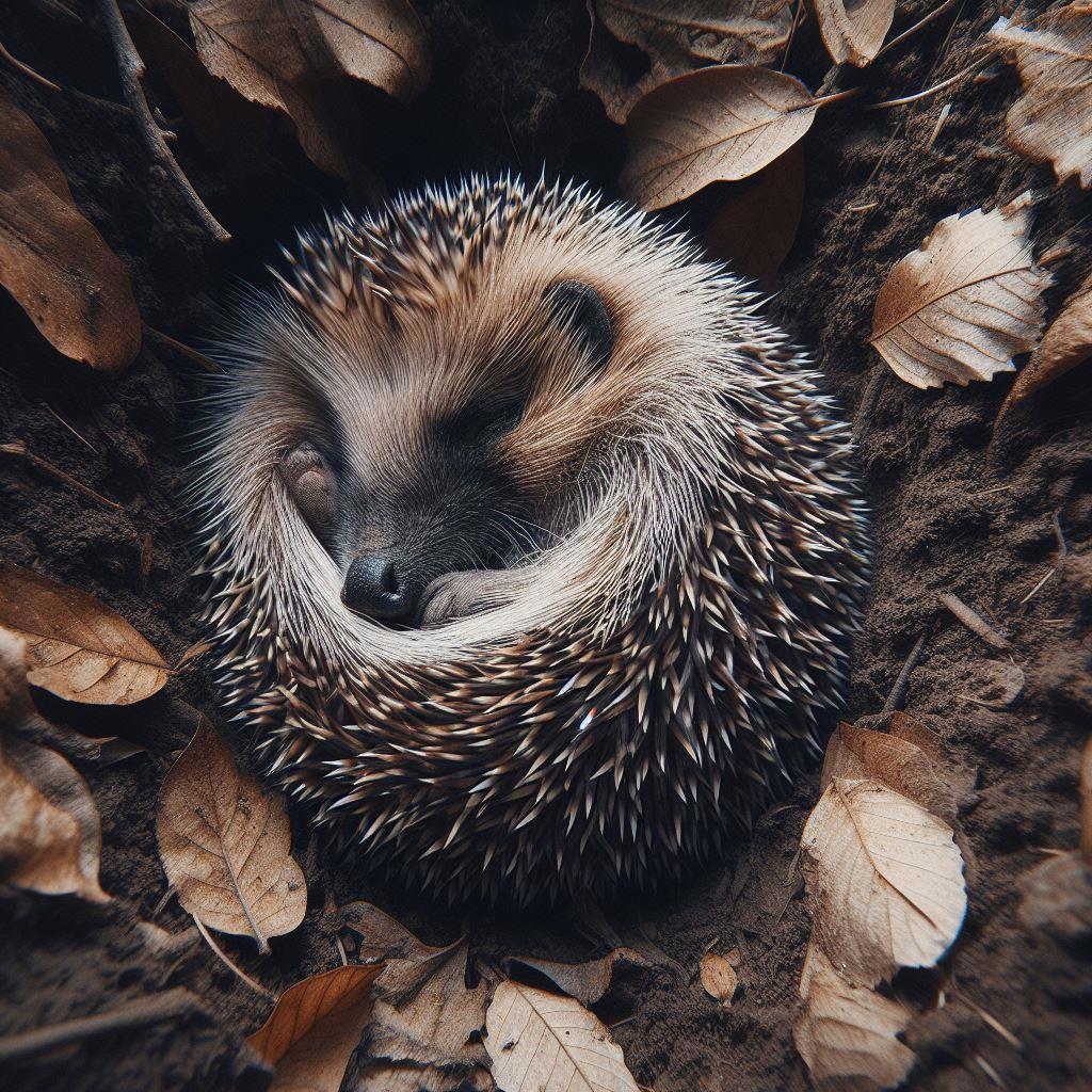 Почему он не гуляет по лесным тропинкам, ловя язычком, летящие узорные снежинки? Почему Люч только спит? И я вам отвечу. Люч, как и все ёжики, не может найти себе пищу зимой. Да-да, так бывает. Зимой не найти ягод, коренья скрыты высокими сугробами, а гусенички прячутся в кокон. Поэтому Люч сначала много кушает летом и осенью, чтобы стать упитанным и иметь большие милые щёчки. А потом он забирается в свою норку и ложится спать.