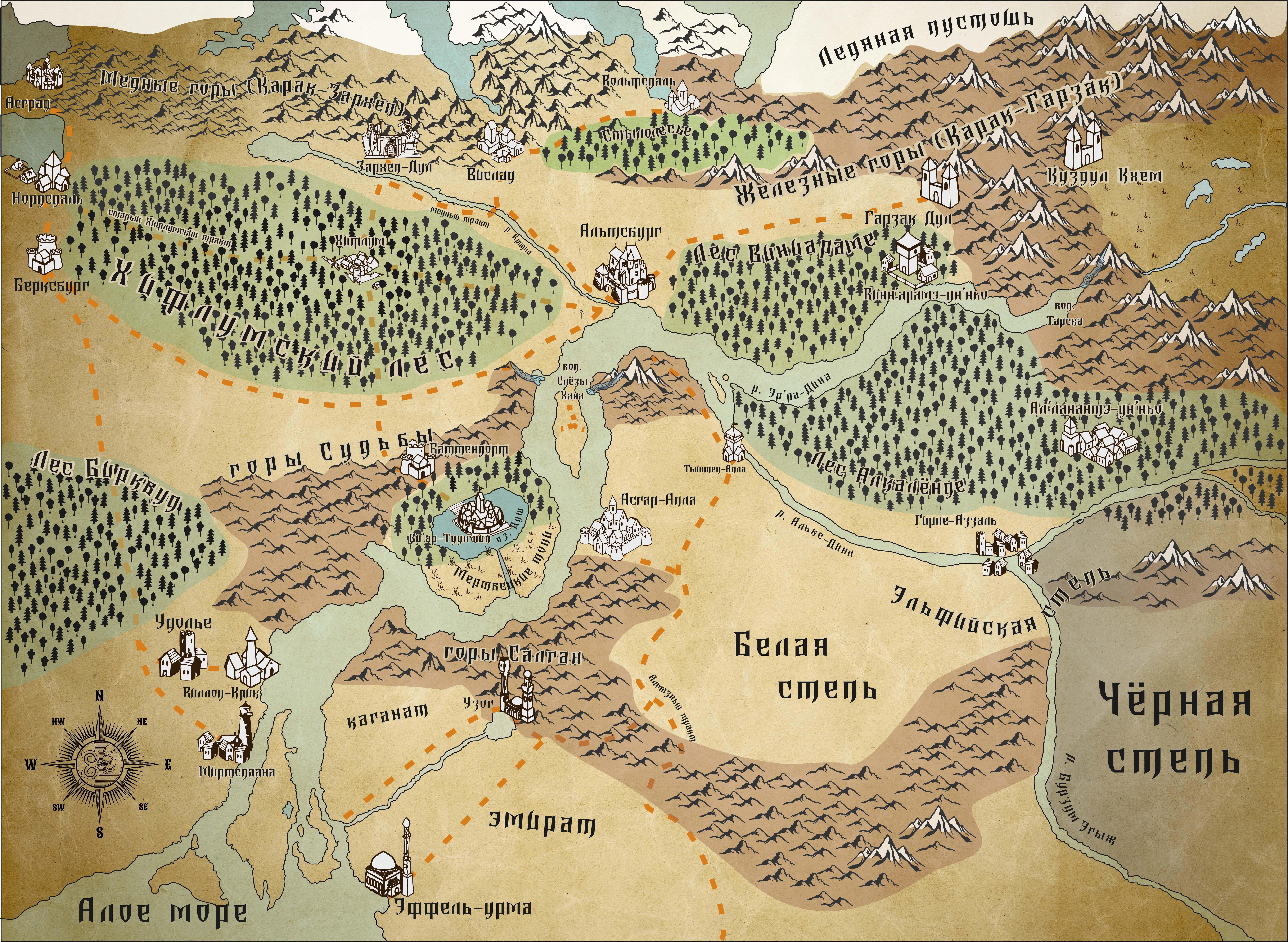 Можно было решить, что их ведёт в ночи чутьё крупного чёрного пса, что держался рядом с направляющим, вот только пёс шёл позади него. И не слух - на ходу они ещё и болтали. Правда, говорил по большей части низкорослый путник. Его акцент и тембр голоса выдавал в нём редкого гостя не только северных земель, но и вообще любой части известного надземного мира. Он был уроженец самых глубоких, даже по гномским меркам, подземелий и принадлежал к расе эльфов. Хотя данное утверждение и вызвало бы лишь пренебрежительное фырканье и закатывание глаз в каком-нибудь Виниарраме. А рискнёте вы при этом чёрном, как смоль, парне назвать его сородичем любого, кто светлее его, живёт на поверхности и имеет такие же уши - словесной перепалкой вам не отделаться. Скорее всего, он её даже не станет начинать - либо сразу же всадит вам в лоб арбалетный болт, либо, если вы размером с его попутчика, улыбнётся и предложит за это выпить. И только после того, как яд парализует ваше тело и капли горячего пота выступят на перекошенном от боли и ужаса лице, он прочитает вам лекцию об основах расово-эльфийской теории. Вот только пена у рта помешает вам вступить в полемику и до самой своей мучительной кончины вам придется выслушать эту бесспорно интересную, поучительную, но вам уже, к сожалению, абсолютно ненужную историю. Историю о бесконечной вражде эльфов дроу с ... да со всем окружающим их миром, с прочими недоэльфами и другими дроу во главе!