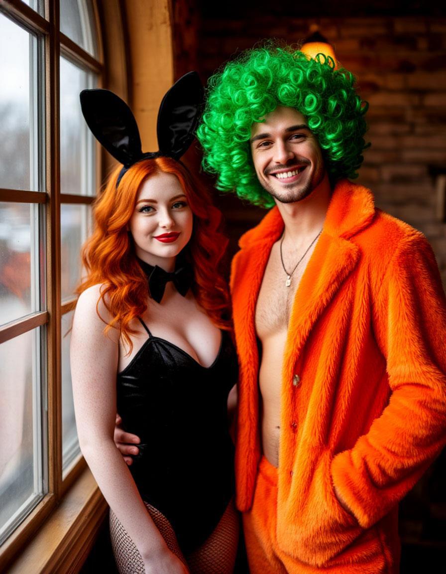 Всё это время мужчина в оранжевой пижаме не двигался, он только смотрел на красавицу. И тут толстяка озарило, что его странный наряд — это костюм морковки. Сисястый зайчик немного попрыгал по комнате, тряся своей грудью приятного третьего размера. Эб с трудом сдержался, чтобы не расхохотаться и стал наблюдать дальше, старательно игнорируя эрекцию. Тут красавица допрыгала до морковки, пошебуршала у неё между ног и опустилась на колени. Головка женщины стала ритмично подниматься и опускаться, а ручки морковки проникли в чёрный корсет.
