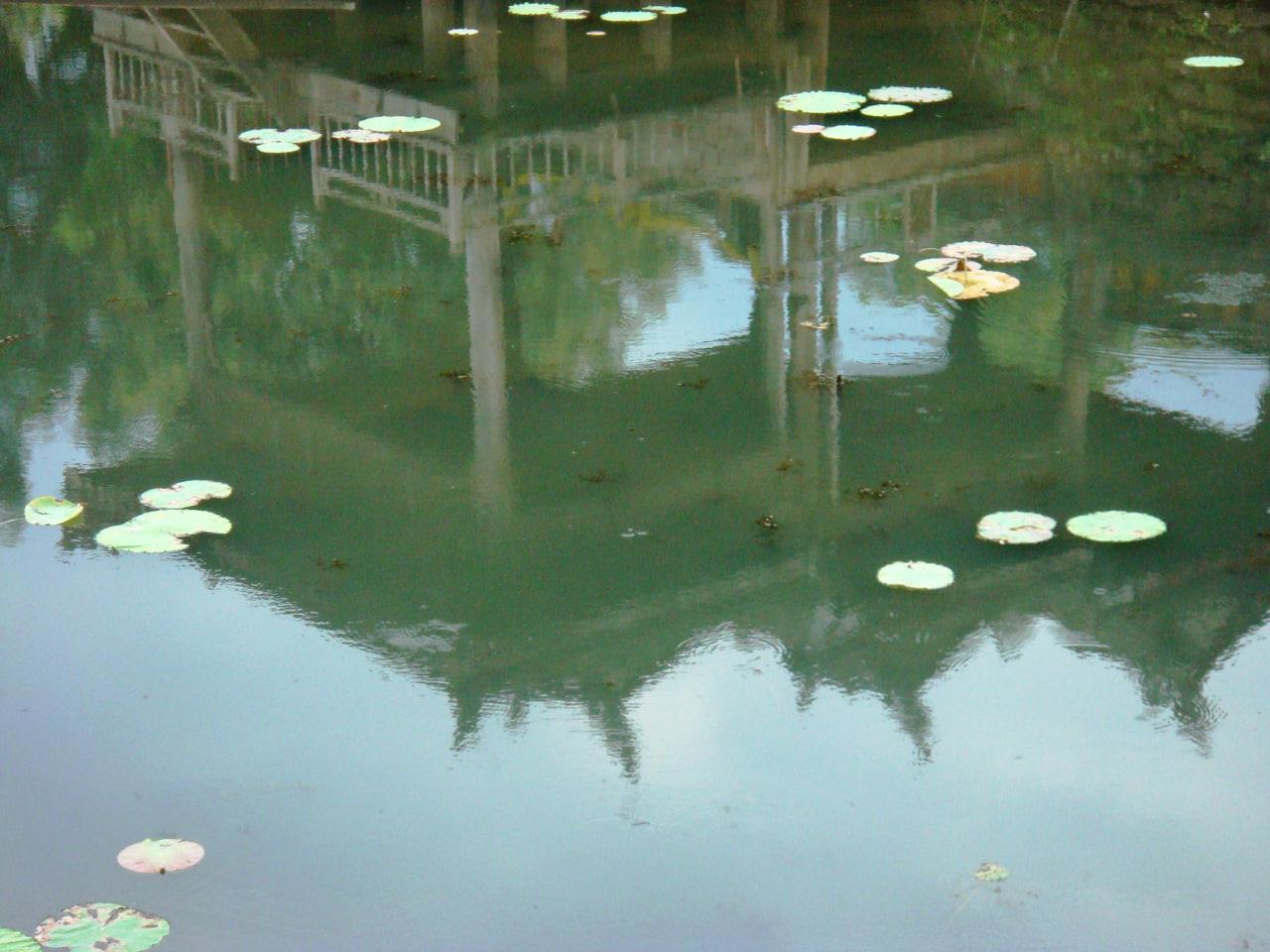 Мы едем на экскурсию в "мой город", как гордо называет его Нге. Хюэ, бывшая кузница императоров, город, который лишь менее ста лет назад потерял статус столицы, сохранил до наших дней колорит спящего царства из крепостей с вычурными драконами на коньках крыш, многоэтажными пагодами, неестественно зелеными рисовыми чеками в десятки километров длиной и грядами извечно-туманных гор, поросших непролазными джунглями. Дорога из порта Да Нанг в Хюэ проходит мимо аэропорта, построенного в годы "американской оккупации", как говорит Нге (а есть еще "французская оккупация" и пару раз невнятно упомянутая "китайская война", о которой многие наши попутчики-американцы имеют весьма смутное представление). Аэропорт недавно приобрел статус международного, поскольку раз в неделю из него теперь летает самолет в Сием Рип. Нге довольно бесстрастно сообщает нам в традиционном для гидов стиле (посмотрите-налево-посмотрите-направо) о том, что "эта железная дорога была построена французскими оккупантами", "этот акведук был построен французскими оккупантами", "этот госпиталь был построен французскими оккупантами", "эта школа была построена французскими оккупантами", и т.д. Из повествования Нге у меня сложилось впечатление, что практичные штатники вперлись во Вьетнам по большей части потому, что основная инфраструктура к тому моменту уже была выпестована французами... Она указывает на металлический мост через речку, выстроенный французами, и ехидно пеняет американское качество: французский мост эксплуатируется без ремонта уже шестой десяток лет, а американский, бетонный, чинится почти каждый год. Злачного вида речка, по иронии называющаяся "Парфюмной рекой" – в свое время по ней сплавлялись баржи с местными ароматическими смолами – отдает ароматами рыбных отбросов, и цвет воды в ней заставляет меня серьезно усомниться в гордом заявлении Нге по поводу того, что жители Хюэ пьют воду из нее почти без очистки – "я смогу выпить эту воду без проблем... а вы – нет!" (читай: "вы, с вашими избалованными цивилизацией желудками...").