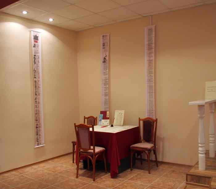 Свитки на фотографиях не очень большие и все же и они составляли проблему. Несколько лет назад в Музее книги Нижегородской областной библиотеки готовили экспозицию, посвященную учебникам XVII-XIX веков. Тогда было решено продемонстрировать посетителям азбуки XVII века. Конечно, речь не шла о том, чтобы развернуть копию 1908 года и повесить ее на стену, предполагалось сделать копию с копии и повесить на стену для демонстрации уже ее. И.... сразу стало ясно, что высоты потолков в помещении не хватит для демонстрации развернутого свитка. Пришлось делать копию азбуки из трех длинных лент. Их-то и рассматривали посетители. И даже пытались читать!