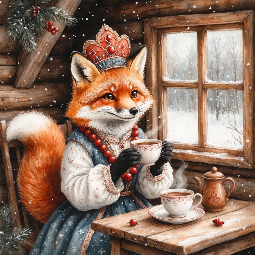 - Так проездом я, - добродушно улыбнулся Лис, чуть покосившись на кувшин с медовухой, - по делам в вашем лесу пребываю и вдруг слышу чудесную песнь Сороки: Лисавета Патрикеевна, мол, женихов искать изволят. В новогоднюю ночь будут гости да угощения у нее в избе. А я что? - он благодарно кивнул хозяйке, которая поспешно налила ему медовухи в глиняную кружку. - Я до угощения очень уж охоч, а о женитьбе я и сам подумываю.