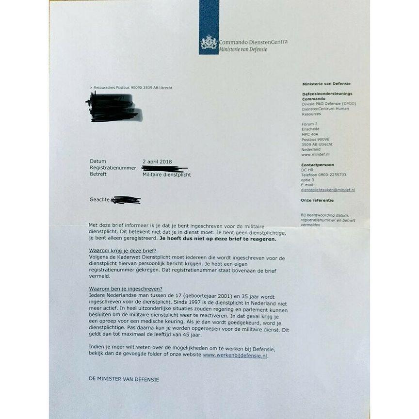 Через пару месяцев вам приходит письмо от Minister van Defensie, с сообщением что вы поставлены на воинский учет. Теперь, как любой гражданин вы обязаны защищать свою новую Родину и вашего короля. Независимо мужчина вы или женщина, военнообязанными считаются все. От 17 до 45 лет. Однако переживать не стоит, с 1997 года никого не призывают служить. Военная обязанность теперь — формальность.