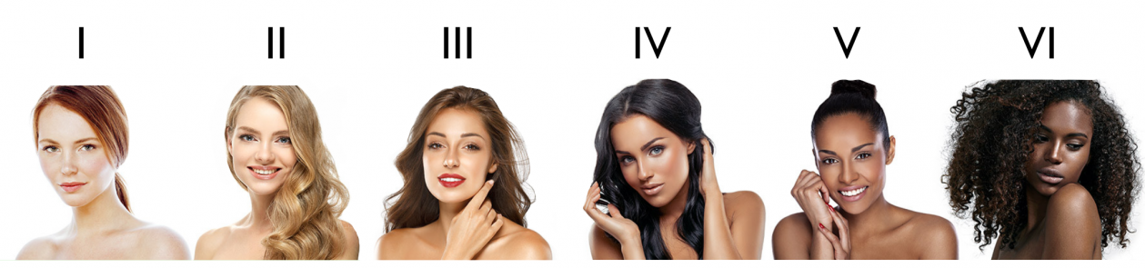 Цвет кожи: бледно-розовый (№1-2 по Фитцпатрику). Кожа плохозагорающая.