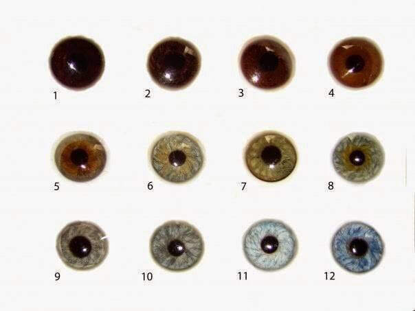 Цвет глаз: №9-12 по шкале Бунака - синий и голубой широко распространен, встречается также серо-голубой и серый.