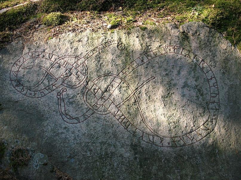 Нет более известного камня, чем камень из Рёка (Швеция, IX век). На нем выбита самая длинная надпись из известных. Ее пытаются расшифровать многие десятилетия, но пока это полностью сделать не удается. Из того, что выяснили: в тексте упоминается король остготов Теодорих Великий или, точнее, его статуя, которую до начала IX века можно было увидеть в Равенне. На камне можно разглядеть несколько видов рунического письма: тайнопись в виде шатровых рун (крестики с палочками наверху) и более привычный рунический алфавит (надпись, которая пониже).