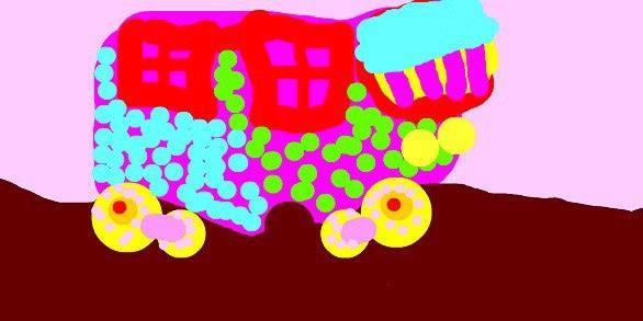 Картина передает идею радости и жизни. Ярко-розовый фон символизирует нежность и любовь, а яркие цвета автобуса добавляют ощущение энергии и движения. Красные линии окон подчеркивают форму автобуса, а желтое лобовое стекло с голубой занавеской добавляют ощущение света и знаний. Ярко-желтые фары и колеса подчеркивают идею движения и динамики. Яркие точки на автобусе создают ощущение праздника и радости. Ярко-бордовая земля добавляет ощущение силы и мощи.