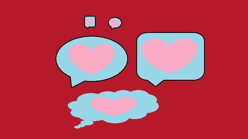 На голубом фоне посланий расположены розовые сердечки.Картина передает идею любви и нежности. Красный фон символизирует страсть и энергию, а голубые послания - мысли и чувства. Розовые сердечки добавляют ощущение теплоты и романтики. Большие послания подчеркивают важность и значимость мыслей о любви, а маленькие - их мимолетность и незначительность.