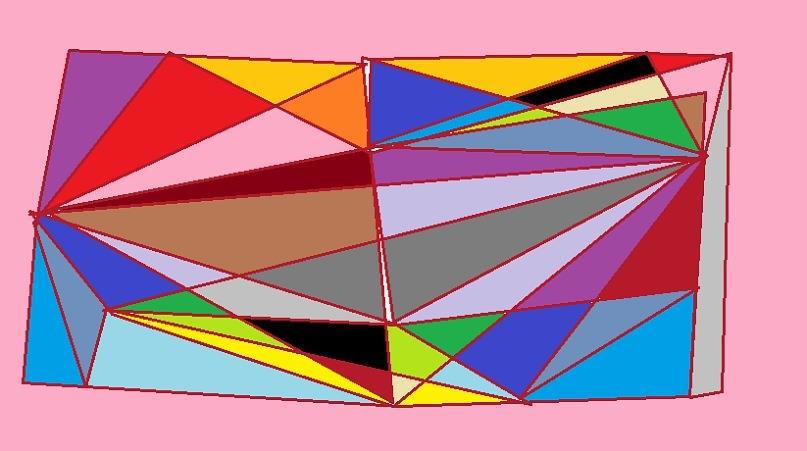 Каждый треугольник имеет свою форму и размер, что добавляет динамики и движения в композицию. Бордовый контур объединяет все элементы в единое целое, создавая ощущение разрушения и в то же время сохранения целостности.