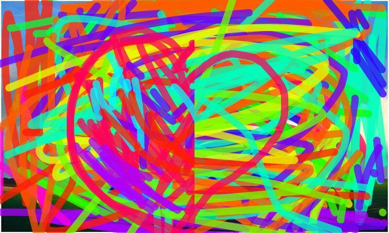 Абстрактная картина "Бушующее сердце" Маринетт Мортем представляет собой множество ярких линий, набросанных в разные стороны, как солома. Линии имеют одинаковую толщину и создают ощущение бурного движения и энергии.