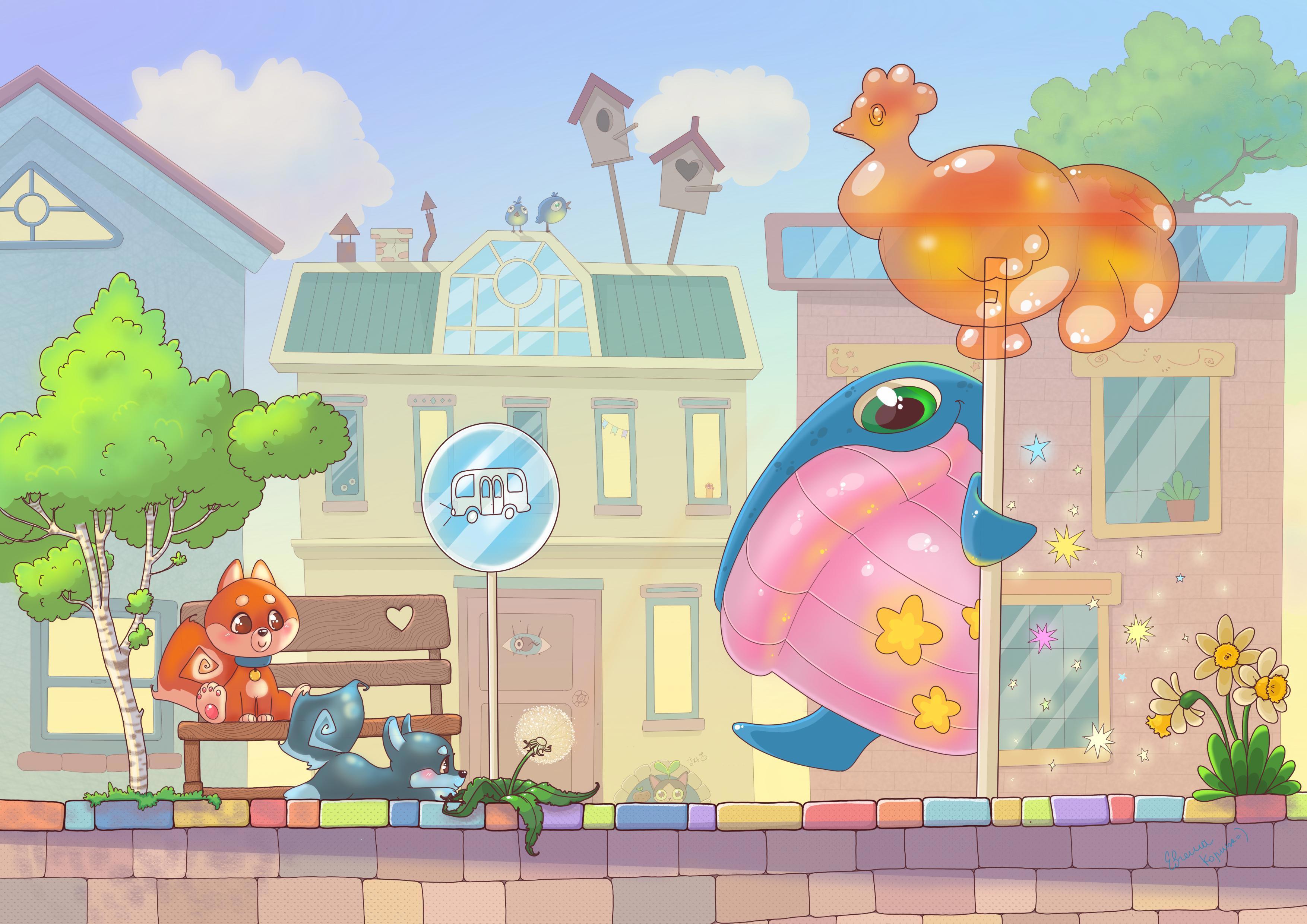 Точно — с закрытыми глазами можно отчётливо разобрать шум прибоя. Значит, в этот раз со случайным прыжком повезло. Аккуратные разномастные домики, цветная брусчатка, уличные светильники в форме огромных леденцов — всё выглядит приветливым. Виталий взлетел над городом и покружил над крышами, звонко напевая китовью песенку.
