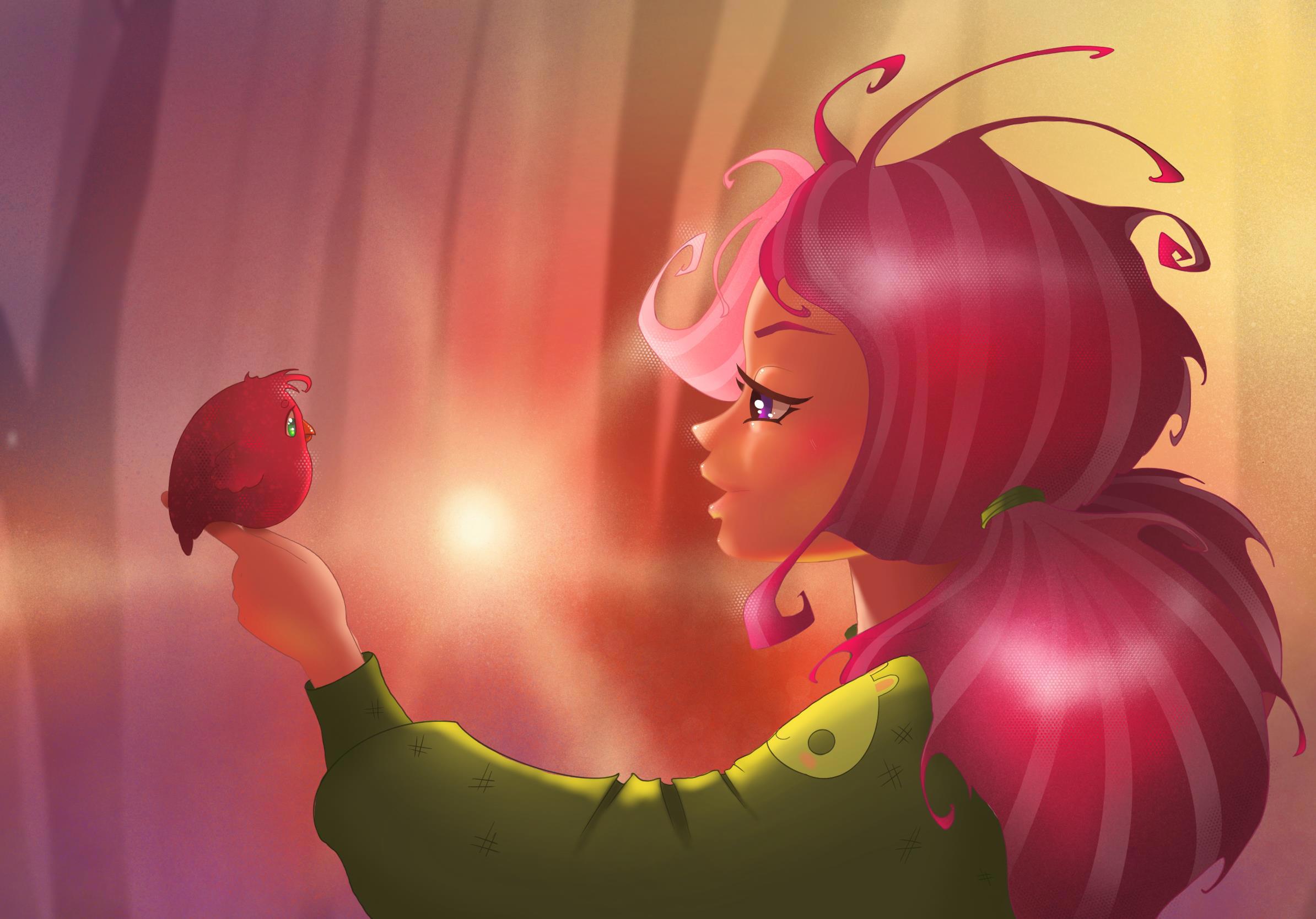 Красная птаха вспорхнула русалке на ладонь, в которой остались крошки. Прежде чем отдать их самой настырной птице, Марго призадумалась и попросила: