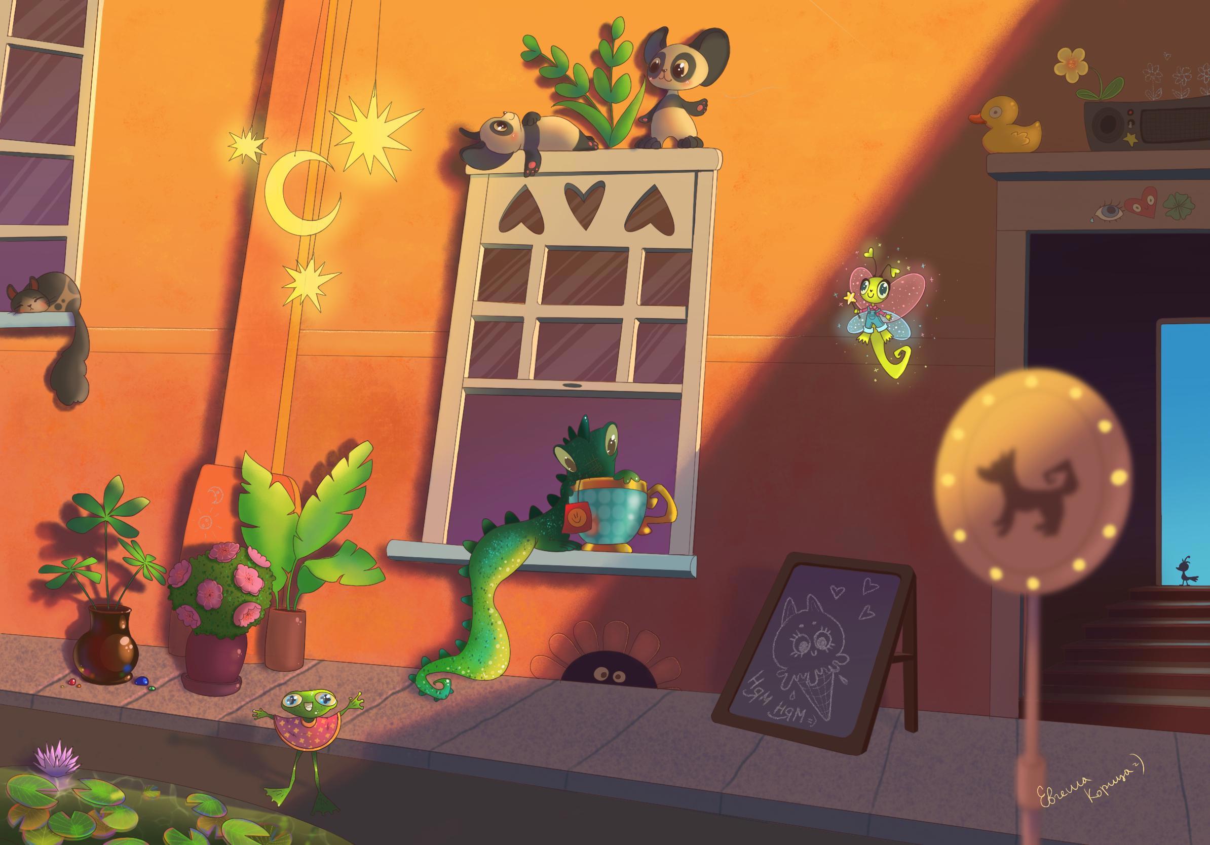 — В кроватку под одеяло, — утконос отчаянно зевнул и облизнул земляничную жижу с ладошки. Затем взял салфетку и протянул русалке. — А, ну да, — Маргаритка пожала плечами. За разговорами ребята не заметили в окне улыбающегося кита с розовым брюшком, который с интересом их разглядывал.