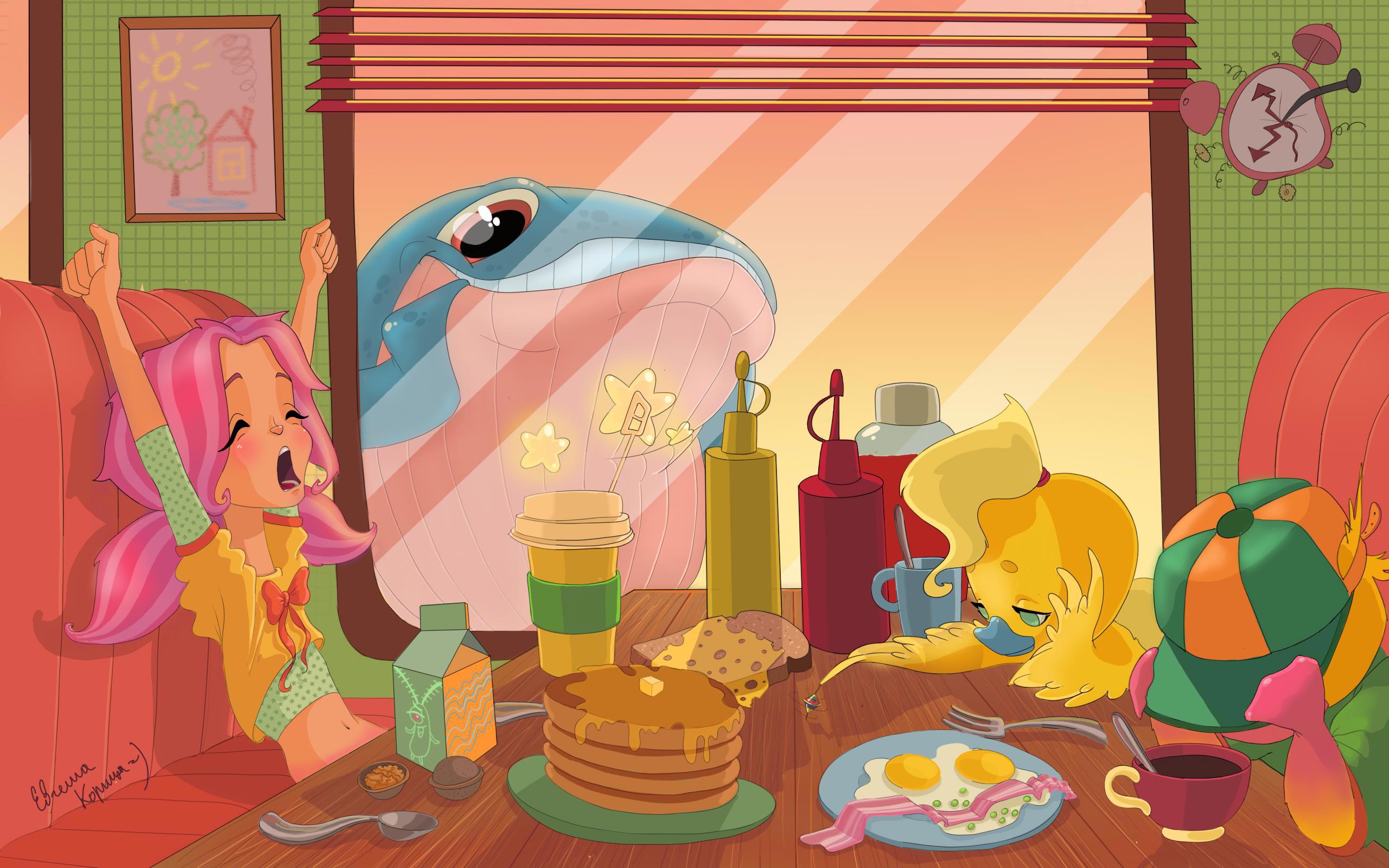 — Ладно, вкусненько позавтракать на рассвете, а потом снова в мягкую кроватку — в этом что-то есть. Мне после такого снятся хорошие сны, — русалка положила себе в тарелку сразу несколько блинов и щедро полила их земляничным сиропом.