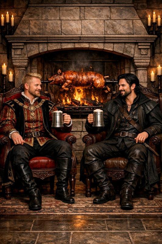 Церемониальную часть можно было считать законченной. Я подал знак слугам, и они поставили перед моим троном стол и две невысокие скамеечки для девушек. Другие столы со скамьями поставили перед эльфийскими послами и моими приближенными. Когда все уселись, слуги начали вносить блюда с едой и кувшины с вином. Впрочем, подробно описывать пир не особо интересно - было произнесено много тостов, много выпито доброго вина и съедено вкусных блюд. А потом мы отправились в спальню, но это уже другая история, и она только для нас троих – для меня, Лориэль и Эолы.