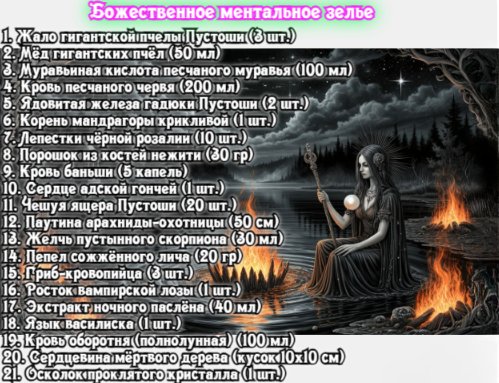 - «Сис, ты серьёзно? Двадцать один ингредиент? Половина из которых смертельно опасна даже в добыче? Ты же говорила, что с ними проблем нет!»