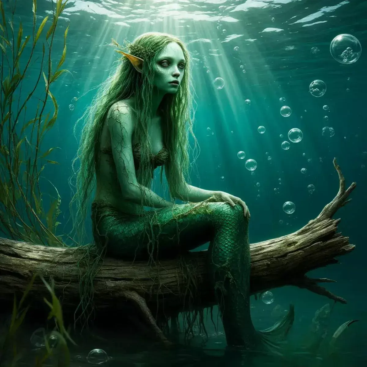 Русалка смеётся — тихо, звонко, как ключевая вода по камням.