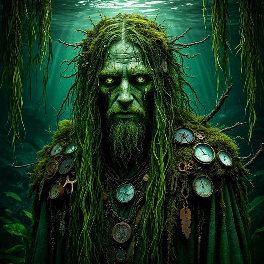 Сидит Водяной на валуне своём, что в самом сердце подводного леса, где даже солнце не смеет глядеть прямо — только лучики зеленоватые, как усталые духи, пробираются сквозь толщу воды. Ил под ним — не ил, а целый ковёр дум невысказанных, грёз несбывшихся, да обид давнишних. Водоросли вокруг — будто бы девицы скромные — колышутся в такт течению, словно вздыхают: «Ох, батюшки… опять он за своё».