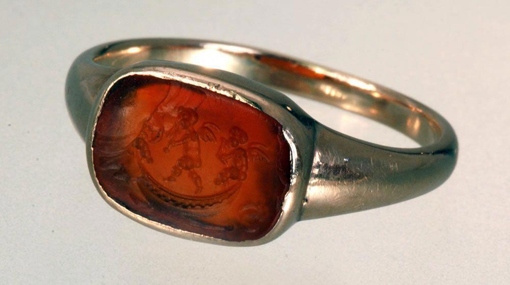 Взяв шкатулку, она отдала ее внучке.Девушка открыла ее и достала золотой перстень с сердоликом.