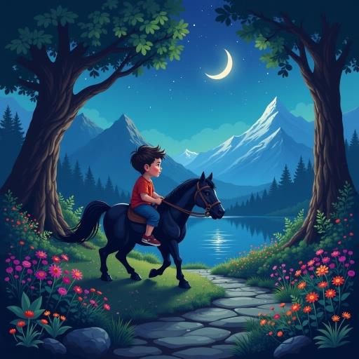 Лева кивнул и прыгнул к нему на спину. Конь поскакал легко и плавно, все выше и выше. К самым облакам, чуть-чуть не касаясь луны, такой желтой, как лимонные пирожные. Леву от всего съеденного, выпитого и произошедшего стало укачивать. Голова клонилась к гриве. Он обнял конскую шею, положив щеку на ее мягкие волосы, и тут же сладко заснул.