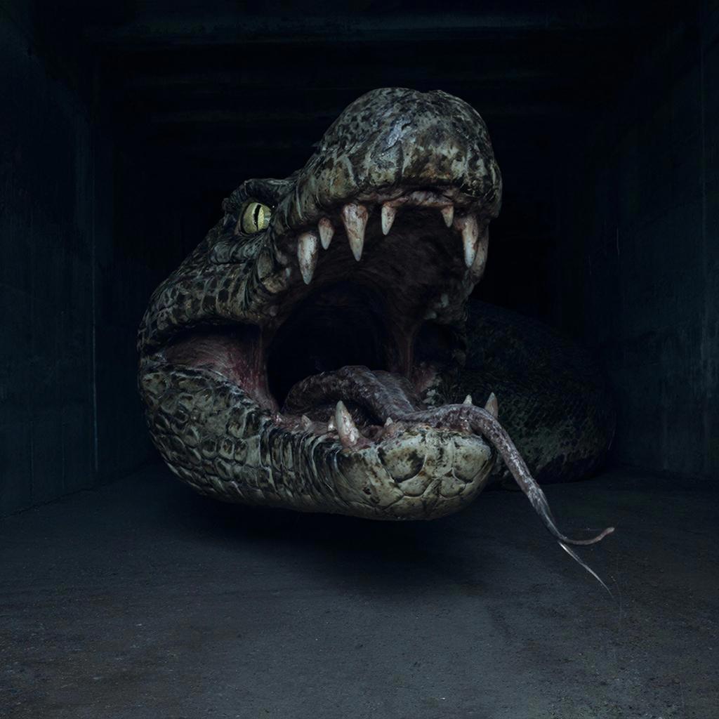 Коснулся стены, одновременно поворачивая голову в коридор, а там такое. Из тьмы показалась крокодилья пасть и речь вовсе не о современных земноводных. Эта глотка способна крупного мужика заглотить. Тварь приближалась быстро, но не ползла, скользила, как будто не касалась земли. Её тело, длинное и гибкое, не извивалось, разворачивалось, как цепь, вытягиваемая из бездны. Пасть раскрылась не просто широко, а неправдоподобно, как будто челюсти разошлись на шарнирах, и тут же захлопнулась, вперёд выстрелил длинный раздвоенный язык.
