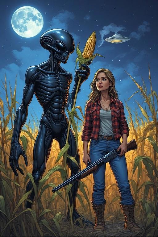 — Исследователь? — Алиса фыркнула, пытаясь скрыть нарастающую панику. — Ага, конечно. Исследователь, который крадет чужую кукурузу посреди ночи? Без спроса? Это называется воровство, космический ты наш!