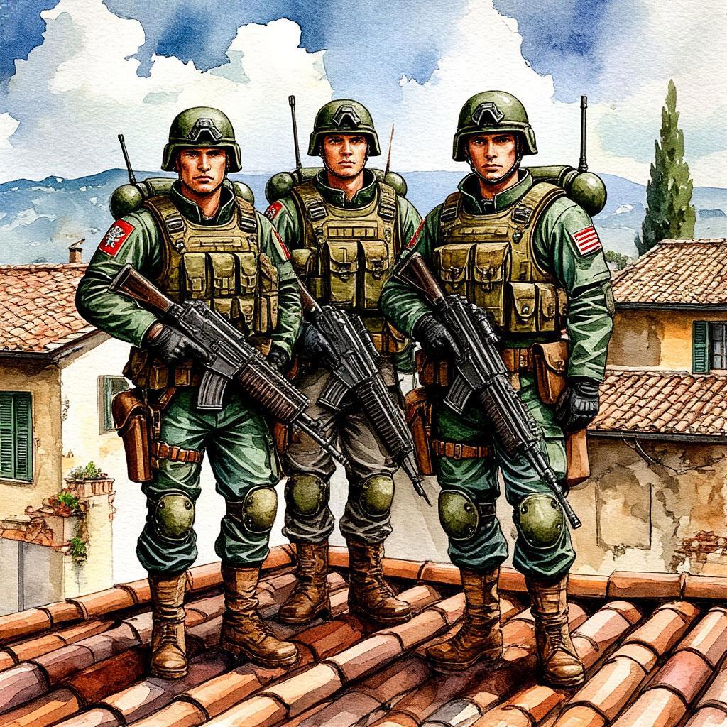 Спустя некоторое время мы уже бежали по крыше, бухая ботинками по черепице. Чуть впереди и внизу солдаты вели бой, закрепившись среди передвижного парка аттракционов в скверике. Грохотали очереди, слышались звуки разрывов. Пахло...