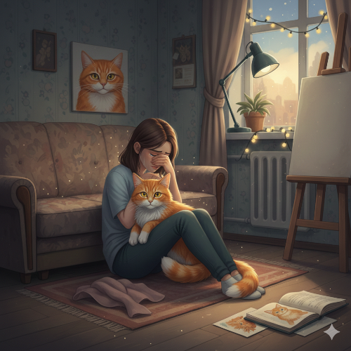 Но прежде чем решиться и протянуть руку к зверю, Маша на мгновение вспомнила свою квартиру. Ту самую, куда она сейчас должна была прийти. Пятый этаж без лифта, узкий коридор, заставленный коробками, которые она так и не распаковала после переезда два года назад. На стенах — те самые обои с блеклыми цветочками. В углу кухни — старый мольберт, заваленный одеждой. Она использовала его как вешалку, потому что смотреть на пустой холст было больнее, чем на груду нестиранных футболок.