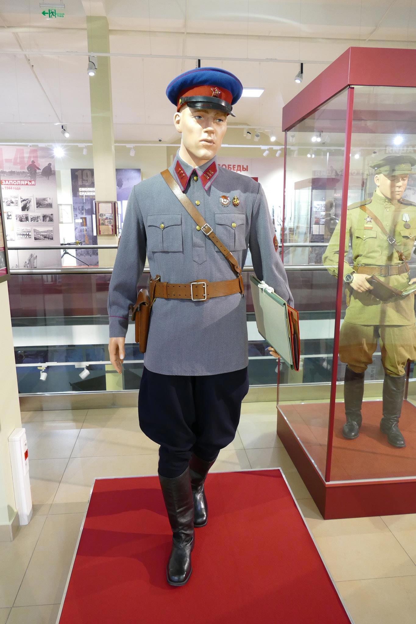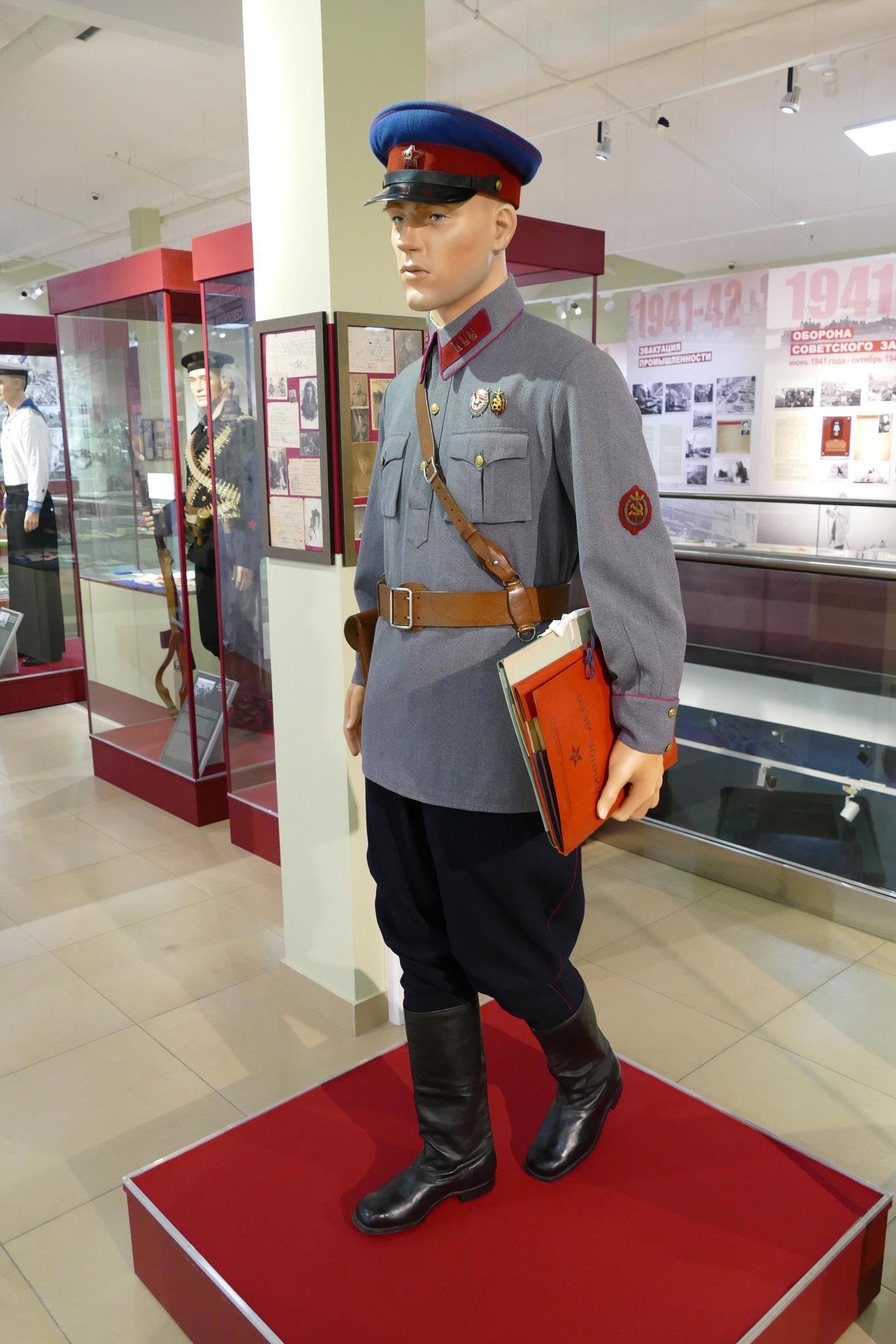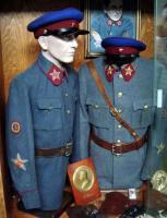 Примечание: Судя по всему, по этой причине цвет гимнастёрок высшего и старшего начсостава госбезопасности в источниках и художественной литературе иногда фигурирует как «серый» или даже «сиреневый», чуть более тёплого оттенка, чем в АБТВ РККА; возможно, столь расширено мог трактоваться указанный в документах «защитный цвет» коверкотовых гимнастёрок.