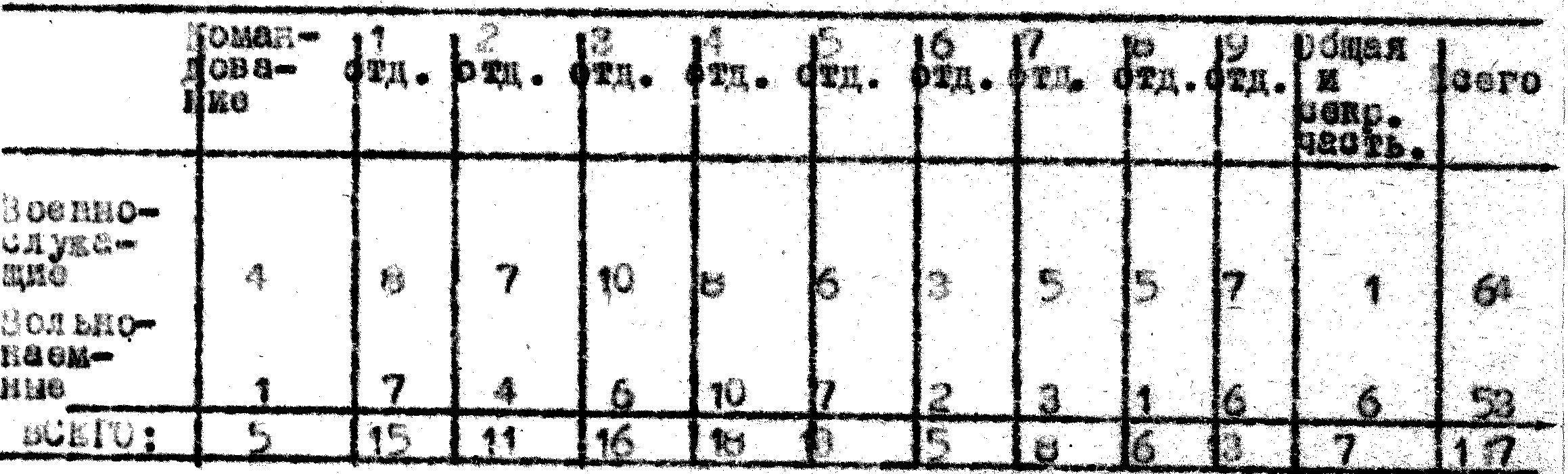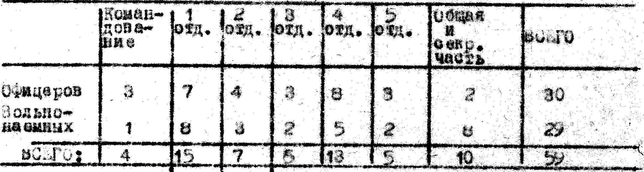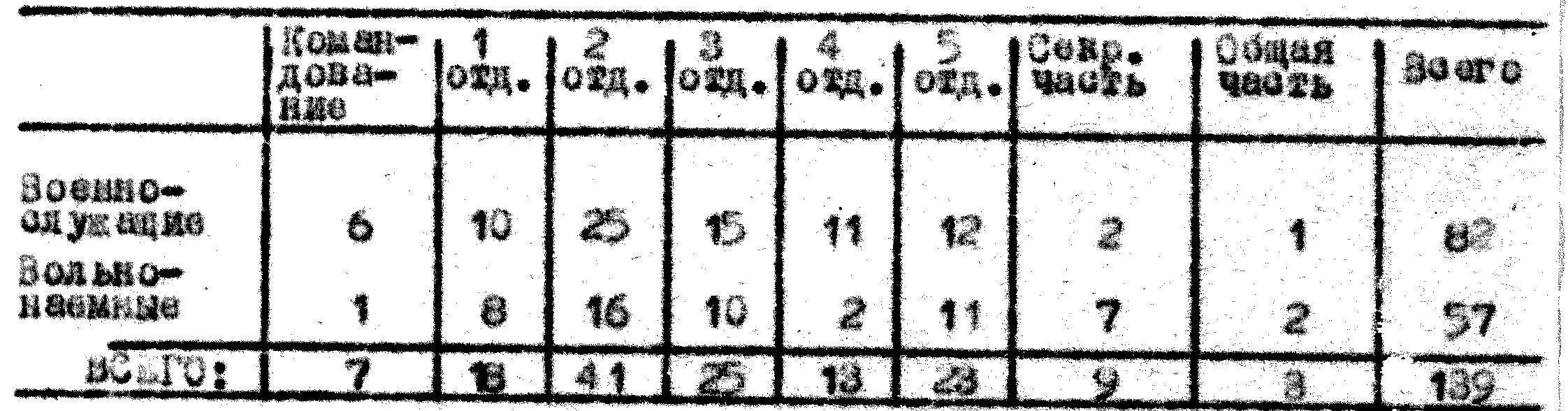 В Управлении на 1.9.41 г. имелся некомплект 17 военнослужащих и 14 вольнонаемных, а всего 31 человек, иди 22,2% к штату.