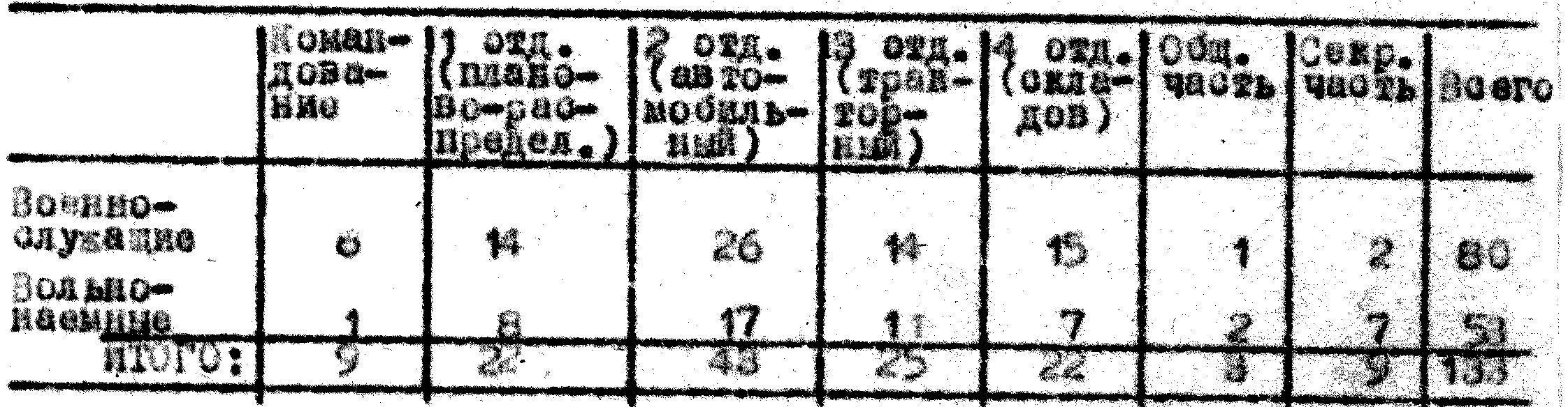 Таким образом, с марта 1944 года и до настоящего времени Управление в составе 30 офицеров и 29 вольнонаемных сотрудников выполняют работу по обеспечению армии автомашинами и авторезиной.