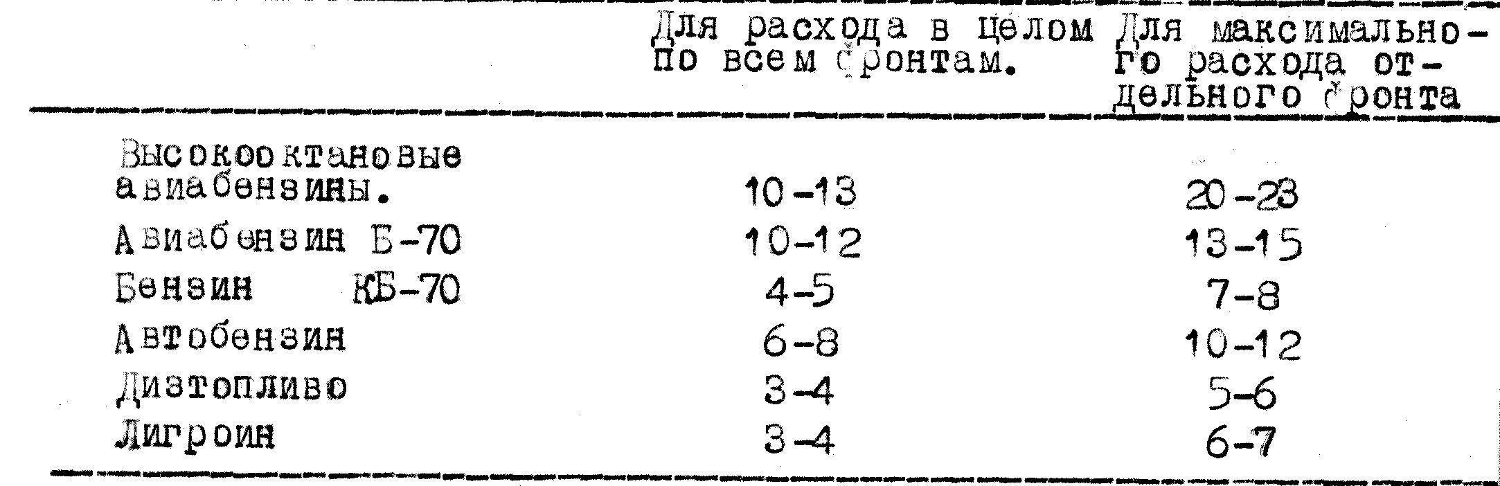 На основании опыта Отечественной войны, в качестве нормативов для дальнейшего планирования можно принять (в заправках на месяц):
