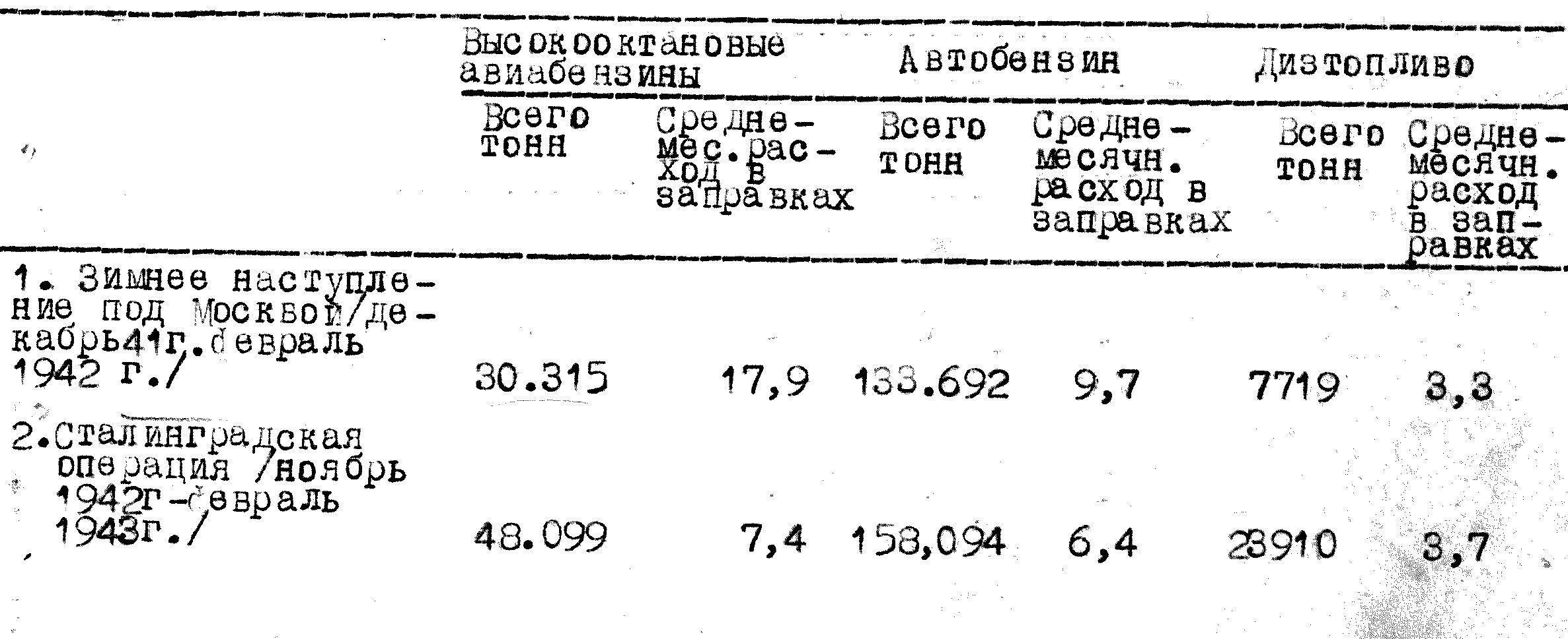 Сравнительные данные расхода ГСМ по различным компаниям, проведенным Красной Армией (в тысячах тонн):