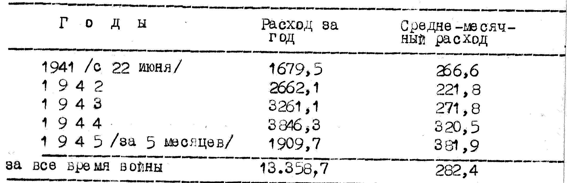 Динамика расхода всех ГСМ за время войны представляется в следующем виде (в тысячах тонн):