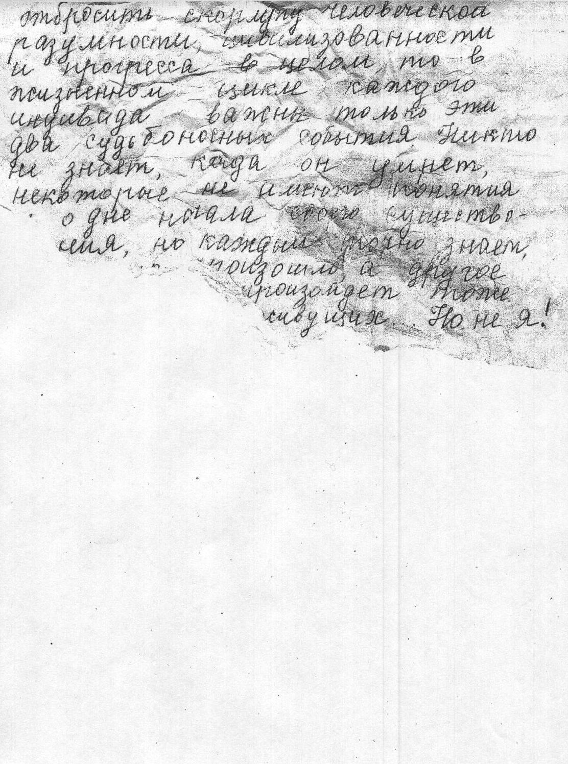 Мысль фиксировать все происходившее со мной пришла в голову еще и потому, что я стал попадать во временные отрезки, где уже бывал, но не обязательно в тот же момент, из которого перенесся в другое существование, хотя случалось и такое. Позднее заметил, что не попадал я только в те жизни, которые обрывались для меня таким образом, который для других всегда назывался смертью.