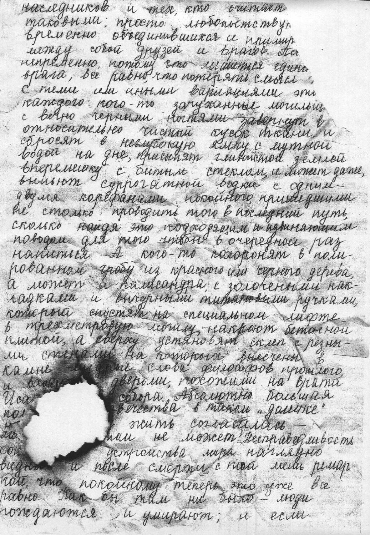 Сохранились они не в очень хорошем состоянии: что-то вытерлось до полной не читаемости, некоторые листы обгрызли мыши, другие обгорели или были оборваны, отдельные и вовсе отсутствовали. Но, тем не менее, смысл написанного, был удивительно прозрачен, до полной ясности и понимания.