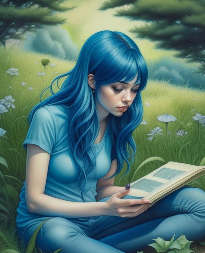 Желание погрузиться в книгу было настолько сильным, что она почти не замечала странных звуков. Лицо - сосредоточенное и бледное - частично скрывали пряди голубых волос.