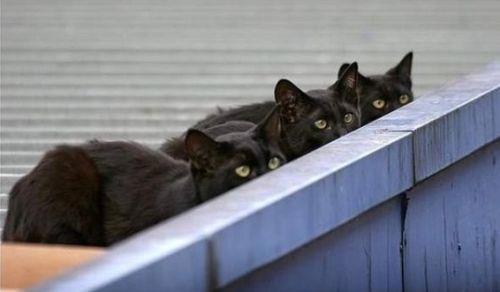 Три чёрненькие гладкошёрстные подружки мирно сидели за бордюром и оглядывали тротуар.