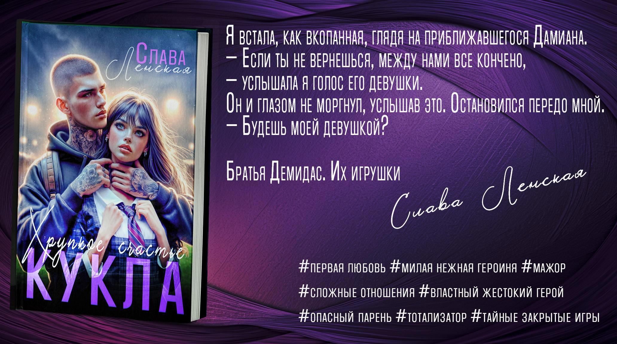 Дорогие мои, большое спасибо, что продолжаете следить за историей Арины и Дамиана. Тем, кто только присоединился, советую сперва прочитать первую часть: Кукла. Хрупкое счастье https://author.today/reader/397231