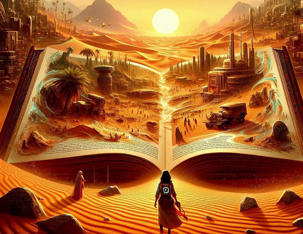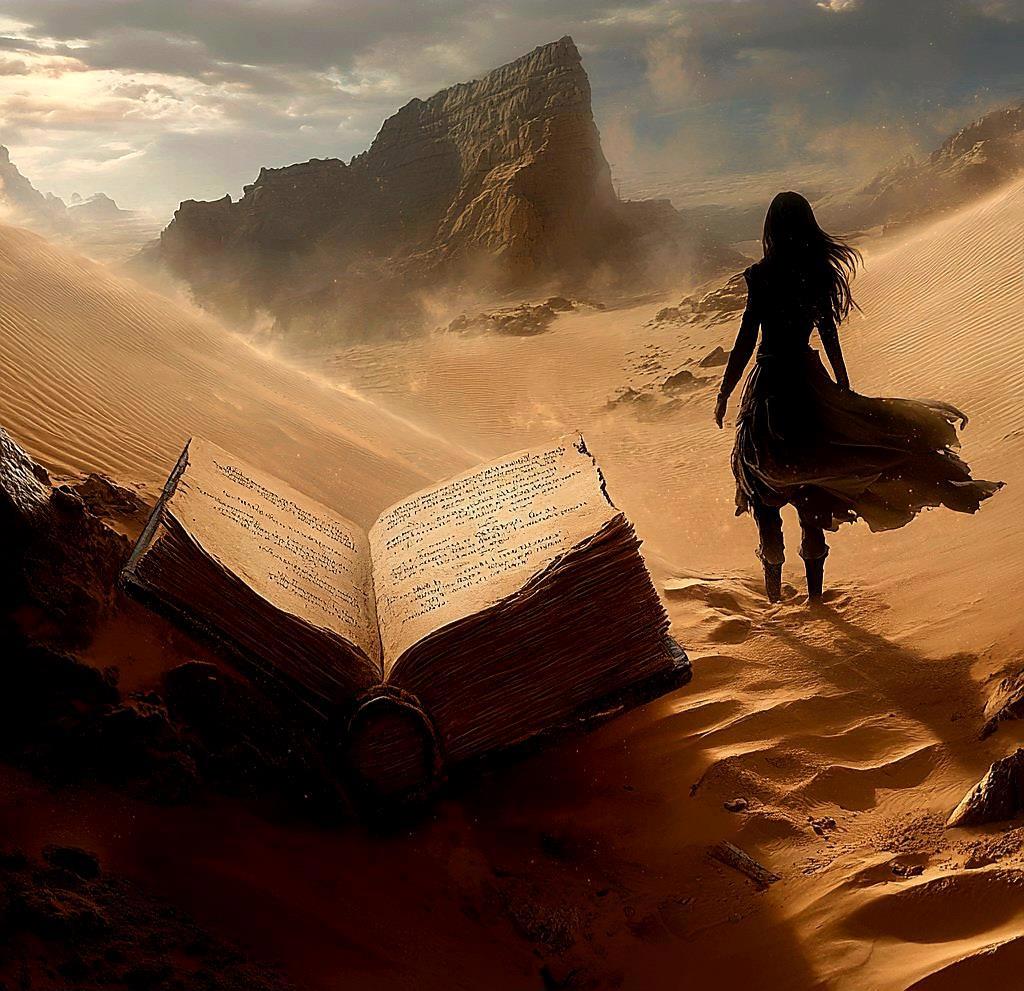 Но однажды – или, вернее, в одно «сейчас», ибо время в присутствии этой книги теряло свою линейную предсказуемость, – текучая смена картин замерла. Перед Ланой, застывшей, словно бабочка, приколотая к бархату энтомологом, раскинулась панорама бескрайней пустыни. Дюны, изгибающиеся с ленивой грацией гигантских кошек, отливали всеми оттенками охры и старого золота под двумя палящими солнцами, похожими на злобные, всевидящие глаза. Это была не просто иллюстрация, какой бы искусной она ни была. Это был зов, приглашение, от которого её душа эстета и сердце исследователя не могли отказаться.