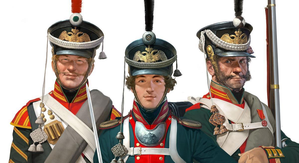Проведя пальцами правой руки по выпуклому золотому двуглавому орлу на кивере, раскинувшему крылья прямо над блестящим лаковым козырьком, и холодно улыбнувшись, поручик негромко (но так что его услышали все), произнёс: