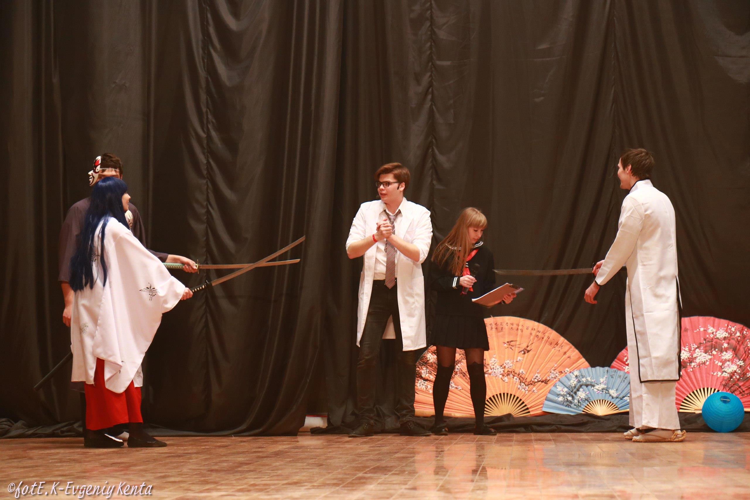 Акайо(оглядываясь назад): - Всё, он, кажется, засмотрелся на выступавших.