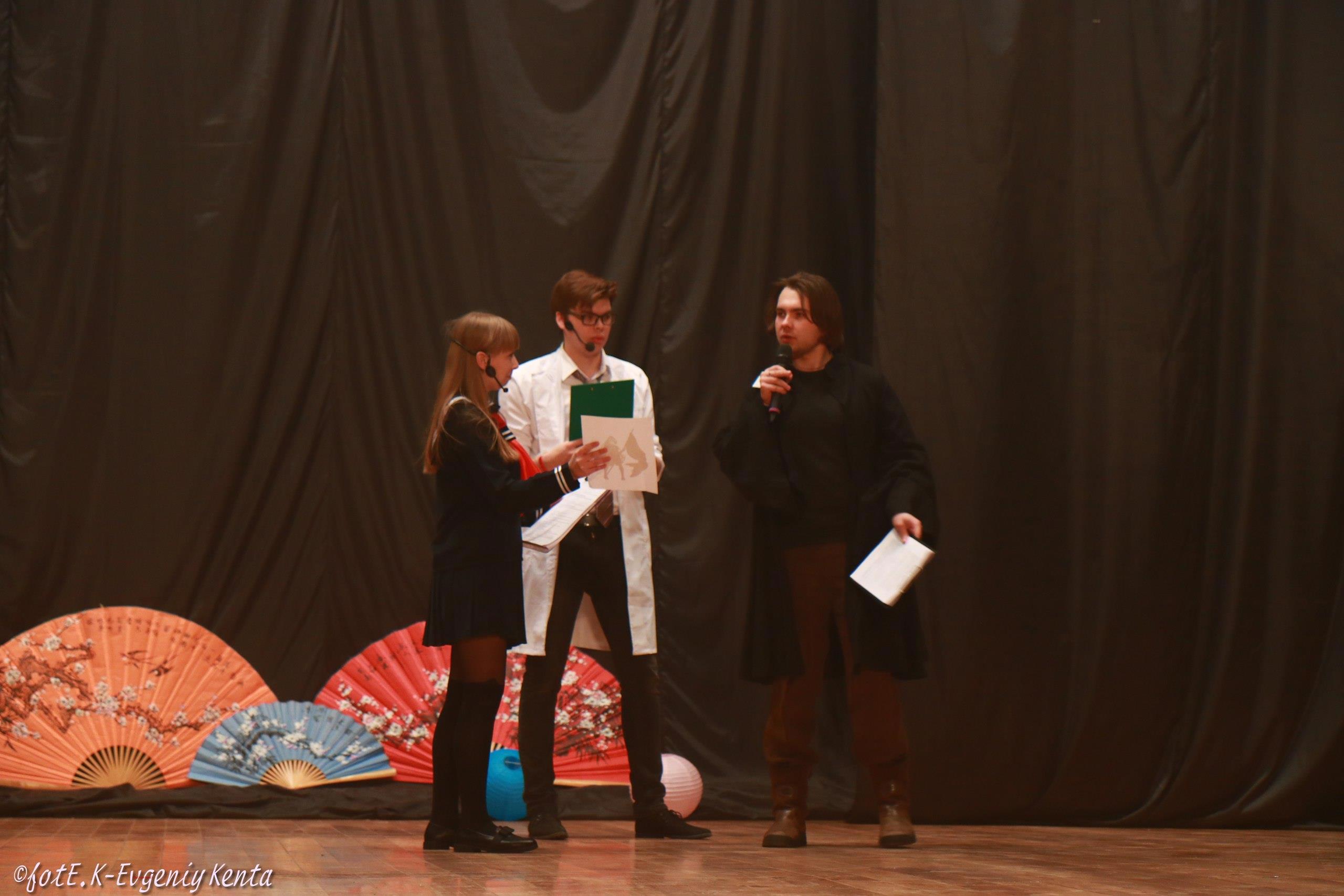 Мао объявляет номер со сцены, уходят втроём.