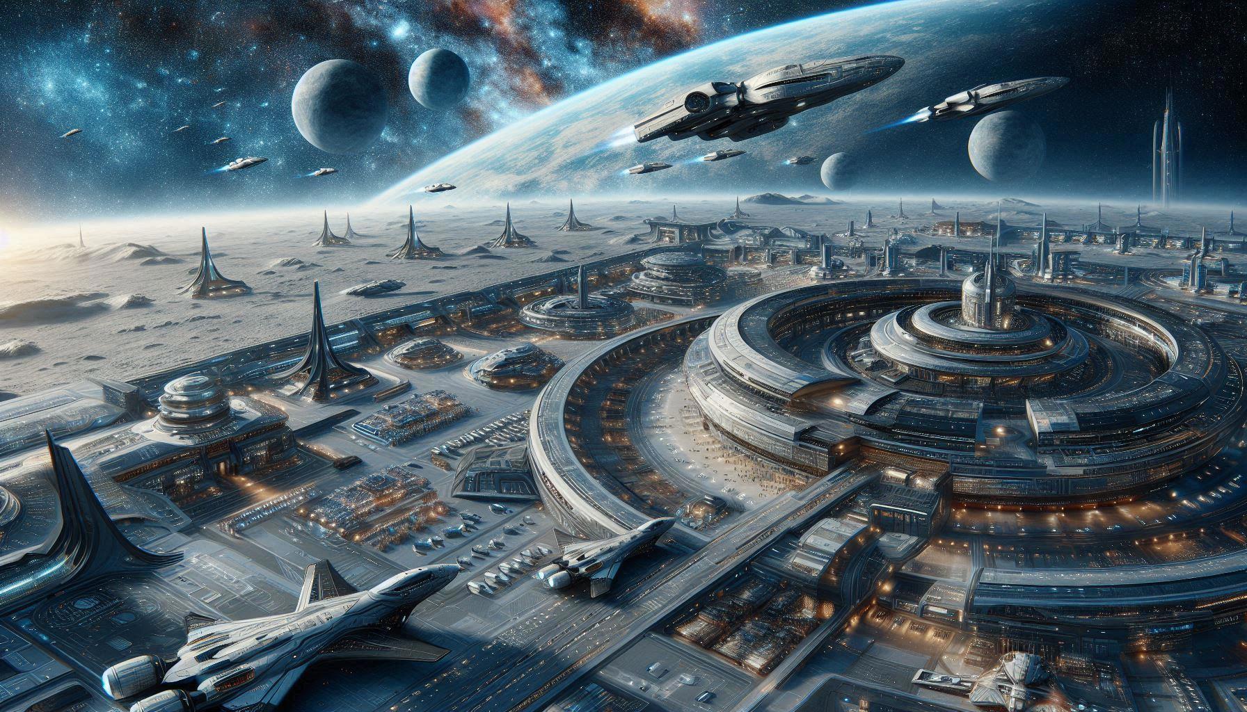 Внизу проплывала серебристая пустыня лунных кратеров, а впереди замерла строгая громада Лунной базы «Селен», чьи огни холодно мерцали, словно звёзды, опустившиеся на поверхность.