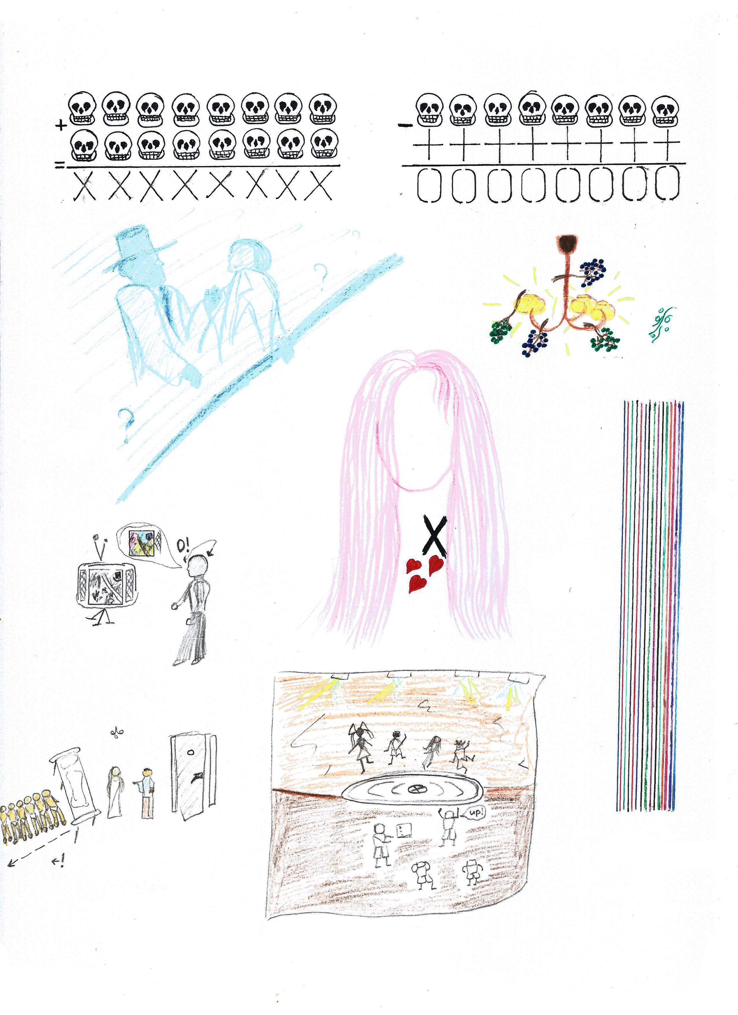 То, что снилось, уже забылось, а проснувшись, я поняла, что мой кошмар продолжается, ибо теперь я в полузаброшенном замке на той самой планете, и в одних покоях со мной тот незнакомец — так подсказывает мне моя женская интуиция. Однако рядом вместо второй кровати стоит громадный, исполинский сундук — который уже и не сундук вовсе, а гроб на колёсах, из которого восстаёт омерзительного вида живой скелет — пыльный и ссутулившийся. Нижняя челюсть его уродливого долихоцефального черепа упала к моим ногам, а костлявые конечности тянулись ко мне. Я было отпрянула, зажимая нос от всего того злосмрадия, что царило в помещении, но дряхлые, изувеченные, искалеченные останки увязались за мною в погоню.