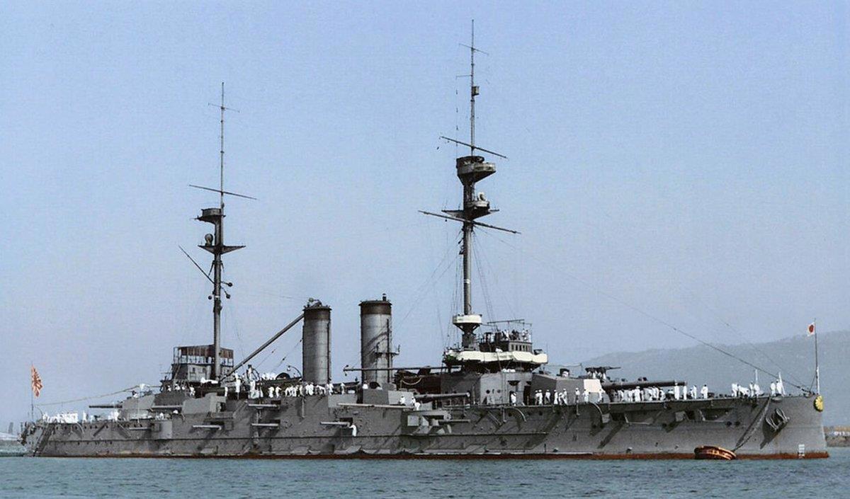 Русско-японская война только началась, когда в Англии по заказу Страны Восходящего Солнца начали строительство двух броненосцев по типу "кингов", все отличие от которых заключалось в замене орудий "промежуточного калибра" с 234 мм на 254 мм стволы. И всего за два года построили типичные броненосцы, одни из сильнейших в мире... пока в Англии не достроили "Дредноут"...