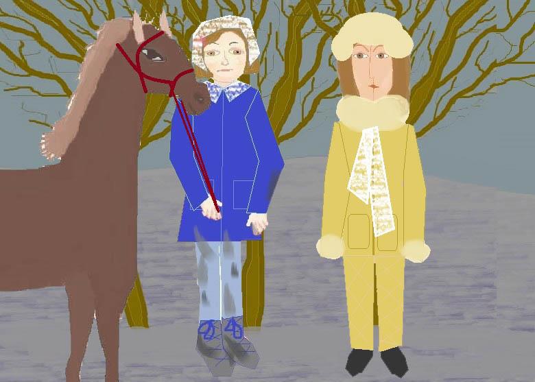 - Девочка? – удивилась дочка. – Хорошо рисует. Попона лошади в розах. Классный рисунок, а ты очень похожа и Аркадия наша. Особенно мне нравятся брызги в виде солнечного света и снега. А как ее зовут?