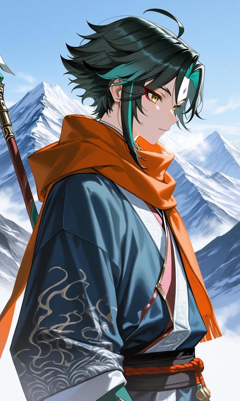 Сяо стоял на скалистом уступе, неподвижный, как изваяние из алебастра, вглядываясь снежную пустоту. Ветер трепал полы его тёплого зимнего халата — неудобного, слишком плотного, навязанного ему самим Владыкой Камня.